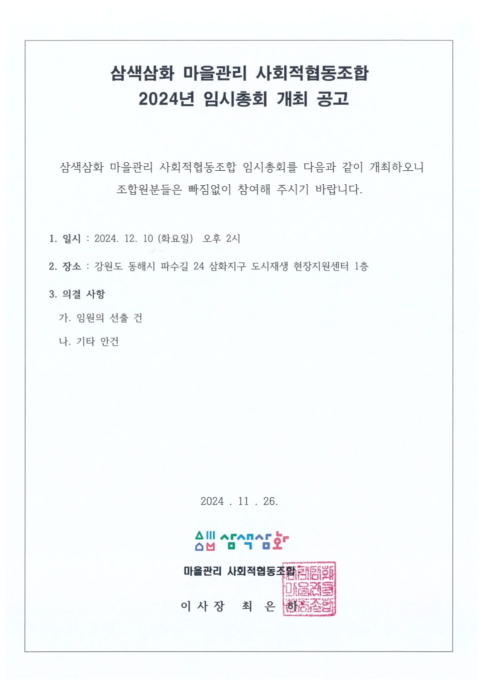 삼색삼화마을관리사회적협동조합